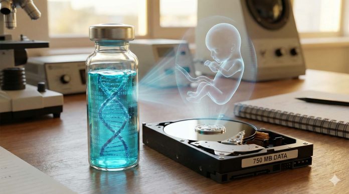 Bir insanı baştan aşağı inşa etmek, ona görmeyi, düşünmeyi, sevmeyi öğretmek ve trilyonlarca hücreyi bir arada tutmak için ne kadarlık bir veriye ihtiyaç vardır?