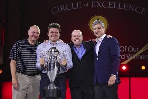 Microsoft Türkiye Genel Müdürü Tamer Özmen, “Yılın Ülkesi” ödülünü temsil eden “Şampiyonluk Kupası”nı Atlanta’da düzenlenen törenle Microsoft CEO’su Steve Ballmer’ın elinden aldı. Çin, Hindistan, Rusya, Brezilya gibi yüksek ekonomik büyüme oranlarına sahip ülkelerdeki Microsoft şirketlerini geride bırakan, Microsoft dünyasında birinciliği 3 defa tekrarlayarak eşine rastlanmayan bir başarıya imza atan Microsoft Türkiye, şampiyonluk kupasının daimi sahibi oldu.