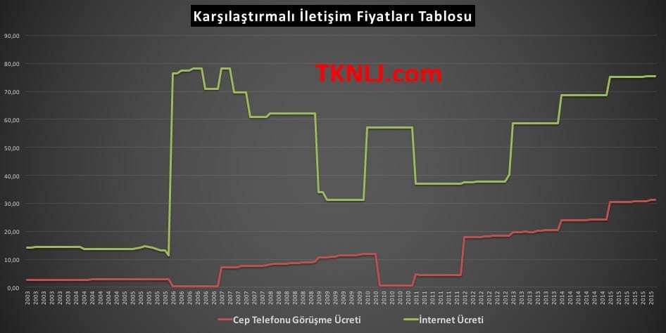 Sabit telefonla konuşma ücreti kesinlikle cebin altında görünüyor ama 2003 yılıyla kıyasladığımızda artış yüzde 47500 işte. Virgülden sonra küsüratı da var.